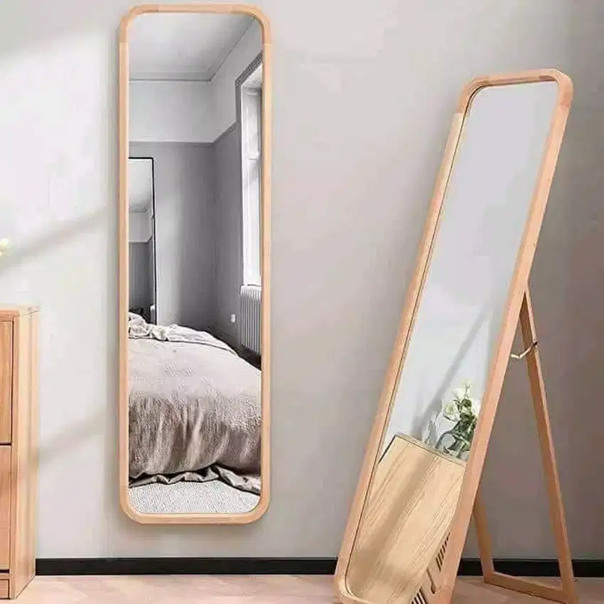 biasanya cermin ini di letakkan di sudut suatu ruangan dan juga bentuknya yang kokoh dan tidak perlu takut lagi karena penopang di belakangnya sudah pasti kuat loh,menjadikan cermin ini cocok untuk menambah rasa nyaman untuk di padukan dengan interor lainnya,